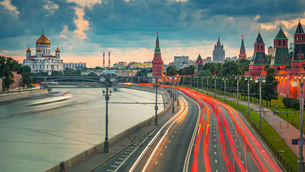 Богоявленский собор построен рядом с рекой. Он выполнен в голубых тонах.